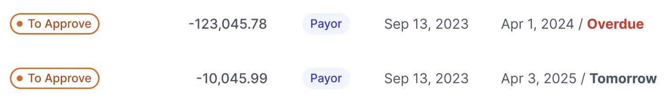 - Tracking: The system displays the due date across the platform and uses clear labels to highlight upcoming payments.